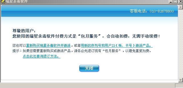 [求助] 瑞星杀毒软件这个图会扣费用吗