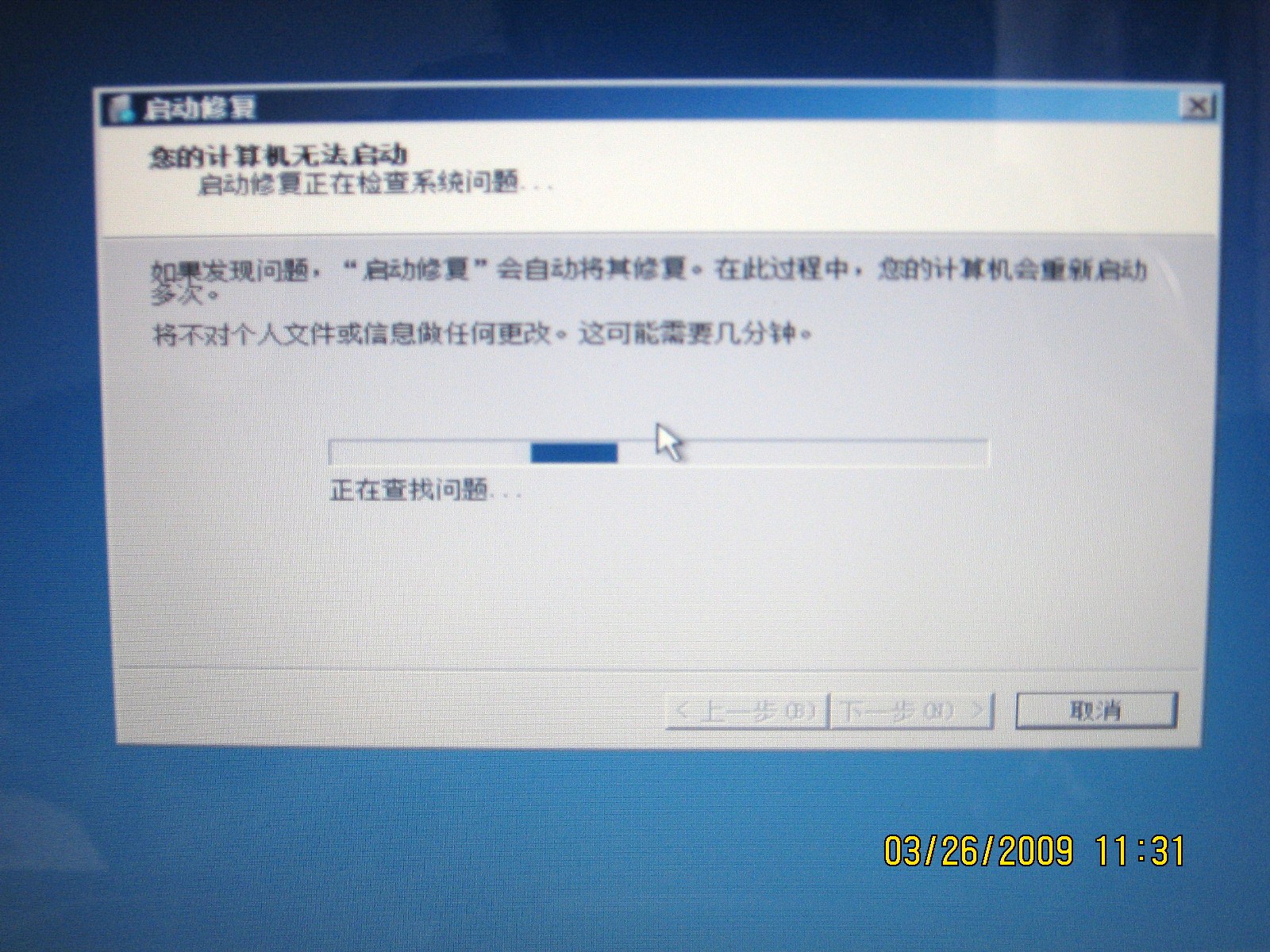 4,每次安装完后从正常模式下,进入到“欢迎”两个字的画面,再死机的情况下再进入安全模式,再重新启动,进入正常模式,电脑就会自检并且会检出好些问题(我看不懂)