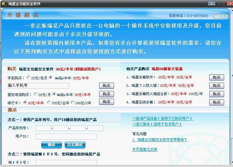 回复:我家的瑞星是买的2年的怎么现在不能升级
