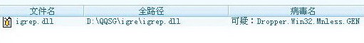 今天上午,杀毒软件升级后,在 QQ三国 游戏程序里,捡出病毒文件,