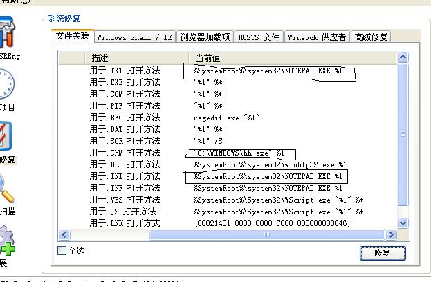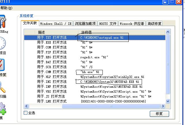 三个关联TXT,CHM,INI文件关联有变化,事实上检测一下实质上发生变化的是TXT的文件关联,