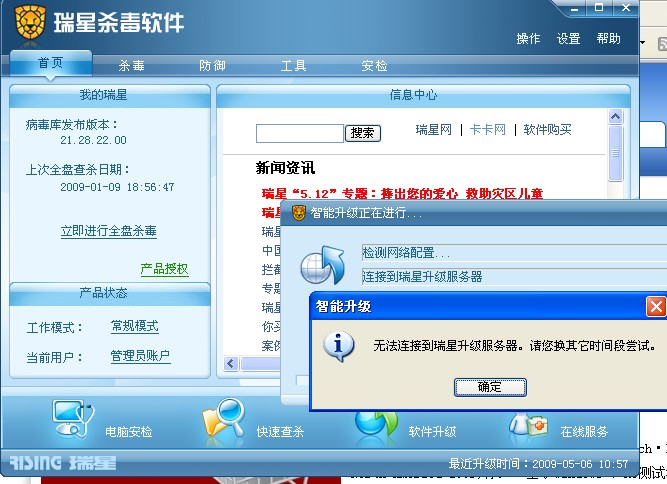 顶起来.另再作说明:我用的是杀毒和防火墙,后者能正常升级。
