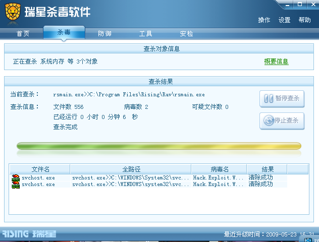 前几天中毒后查杀,杀出来10个病毒。但是有两个一直杀不完
