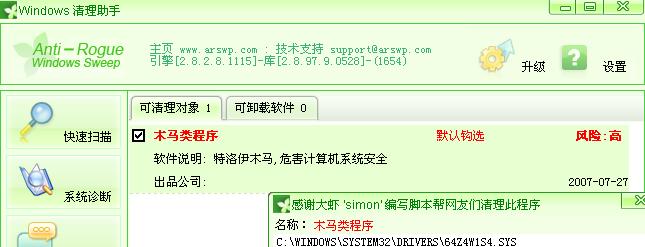 使用Windows清理助手扫描,是木马病毒,也杀不了