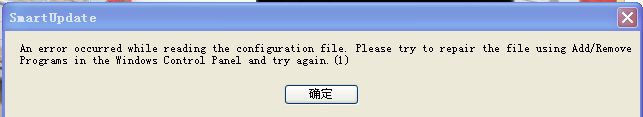 智能升级提示:阅读配置文件时发生错误,请使用WINDOWS控制面版项下的附加程序修复失效的配置文件!
