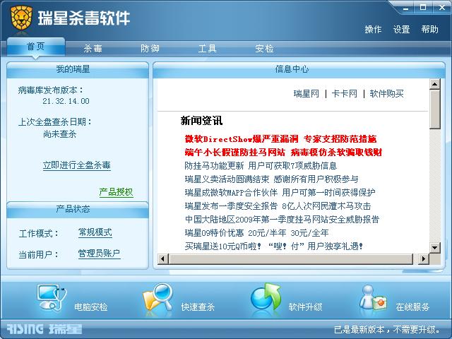 [求助] 请高手贴一下图,明示一下瑞星杀毒软件(不带防火墙)和瑞星全功能的区别