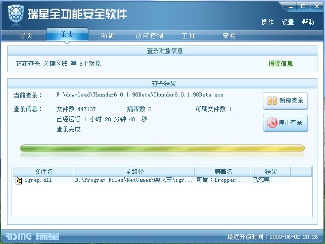 瑞星2009版查杀引擎测试