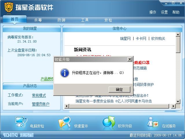 回复:瑞星升级时会出现错误:升级程序正在进行
