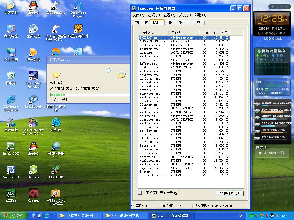 以前拷贝文件的时候CPU才占有20左右 现在飘升 50 夸张点了把 ,为了不影响速度我还把瑞星杀毒给关了?