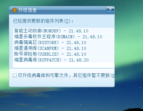 我的瑞星升级信息怎么只显示一半啊!! 我家的os是vista的
