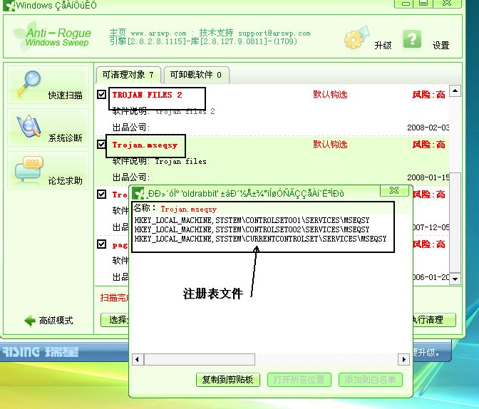 瑞星不能扫描出比病毒生成的注册表文件 arswp和诺顿都可以扫 这些文件留起来成垃圾了!