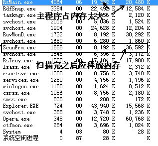 建议学学n久以前的nod32 2.7那个主程序 特别小 ’ 扫描完后为什么scanfrm还战这么大内存?
