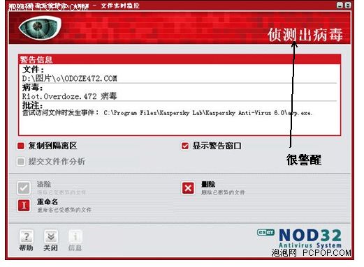 病毒提示框太没震撼力了!看nod32 2.7的