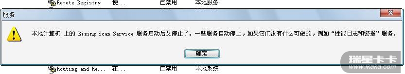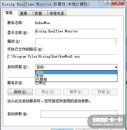 这是瑞星的实时监控服务,启动类型为自动,服务状态为停止。