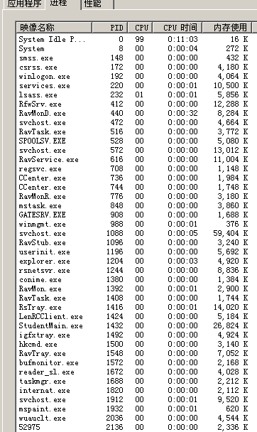 说明下,机子在断网时一切都好,只要网一接通,就会出现一些怪异的进程,请大家看: