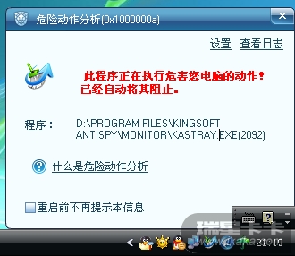 安装金山清理专家 2.7时就提示“危险动作分析”,使用时也提示“危险动作分析”,给出1个图以示证明,希望工程师下载金山清理专家 2.7安装下[url=http://cd011.