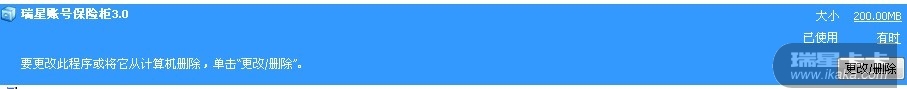 最近无意间看到控制面板里面的添加或删除程序里面的瑞星帐号保险柜的大小是201MB而瑞星杀软09的大小只有187MB怎么会出现这情况啊为什么杀软的大小还没一个组件大容量大啊不过说了上图