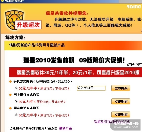 [原创] 为什么我的瑞星激活成功以后还不可以升级