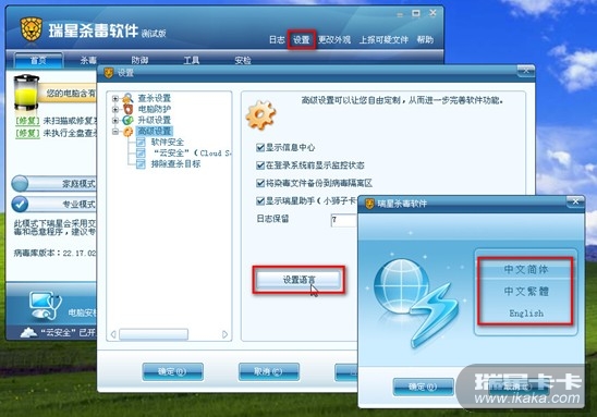 回复:瑞星2010版杀毒软件语言设置