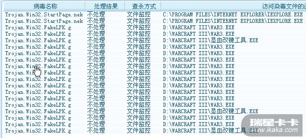 Trojan.Win32.FakeLPK.g                                          不处理                                                          2009-10-16 10:36:42                                            文件监控                                                        D:\WARCRAFT III\WAR3.EXE                                        D:\WARCRAFT III\LPK.DLL