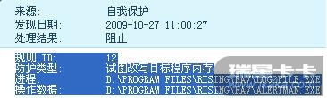 我的瑞星时不时提示“自我保户”,查看日志,发现它在阻止一些程序,但这些程序好像是瑞星自己的,为什么?