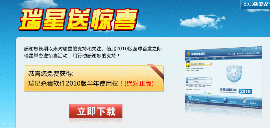 瑞星首页的优惠措施是全功能的图片,但打开后是杀毒的图片,请问半年的免费使用权是全功能的还是杀毒的。
