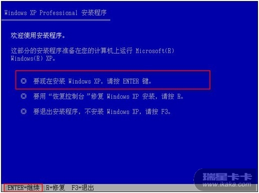 注:这步是“完全修复”的必要操作,请一定要选择“要现在安装Windows XP,请按ENTER 键