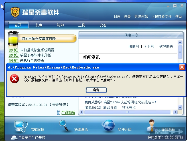 [求助] 瑞星无法升级,见图,目录里有此文件,重装也没用,谢各位了