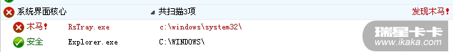 楼主,瑞星的RSTRAY.EXE不会放到SYSTEM32下。