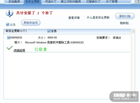 你看看卡卡里面与补丁有关的其他选项卡里还有没有没打上的补丁