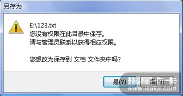 我是Vista系统,今天把文本文档保存到系统盘的时候(就是系统盘里,不是子目录下,),弹出一个对话框,说我“没有权限在这里保存文件,请与管理员联系”,可我用的就是管理员账户啊,是不是有人控制了我的电脑呢?在子目录下又可以保存,请高人来帮助一下。