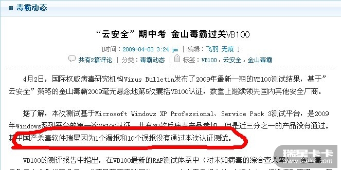 回复:为什么瑞星最近没有获得VB100了
