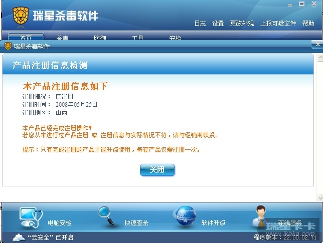 关于瑞星防护。
