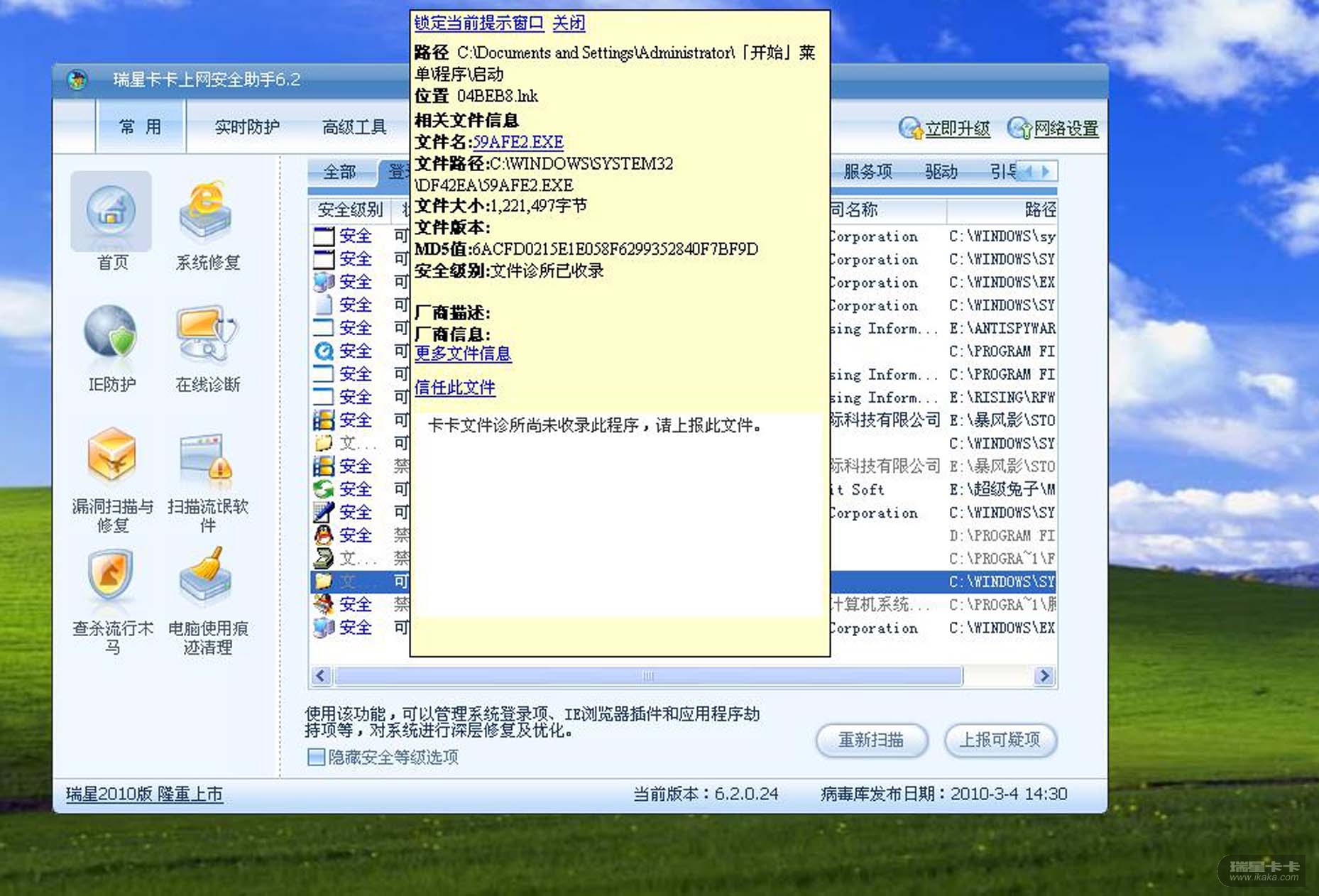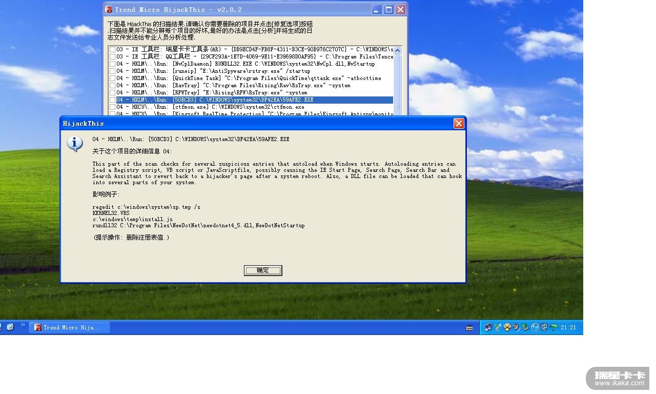 有一病毒瑞星杀不掉,反复中断其进程等还反复跳出.
