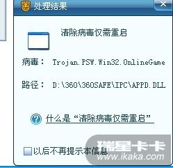 请楼主提供360的软件版本号,瑞星版本号,跟帖上传appd.dll文件,如该文件已被删除可以从瑞星病毒隔离系统中恢复。