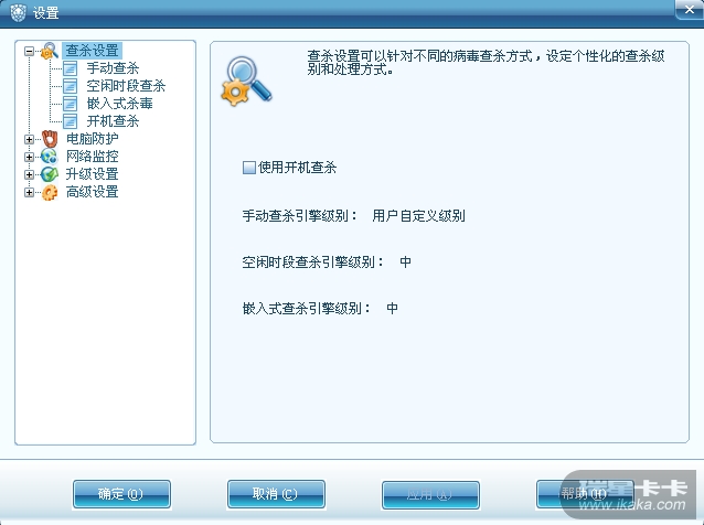 参考下图,将使用开机查杀前面的勾取消。
