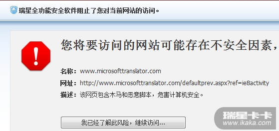 这个网址是“BING翻译”加速器加载的页面,真有病毒吗?