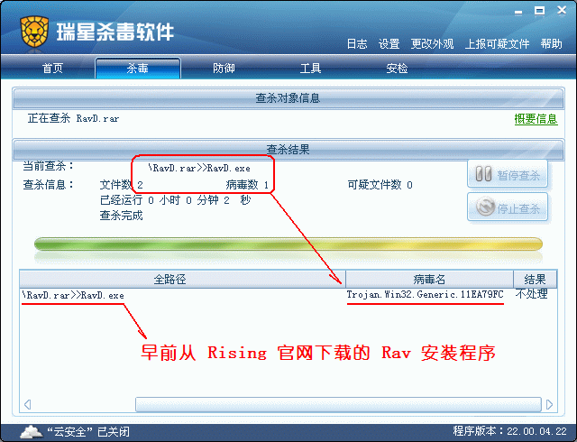 软件名称 引擎版本 病毒库版本 病毒库时间 扫描结果 时间