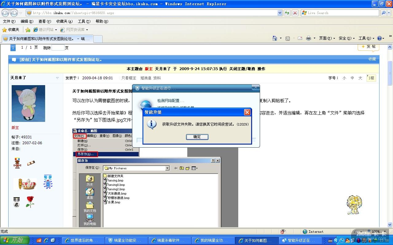 瑞星杀毒软件的版本是多少,lz通过什么方式上网。可以将升级报错发个截图来看。
