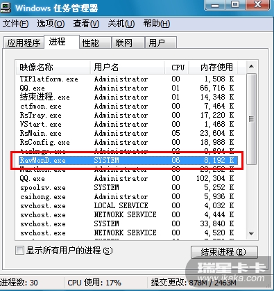 瑞星工程师。RAVMOND占用内存的情况希望瑞星改进