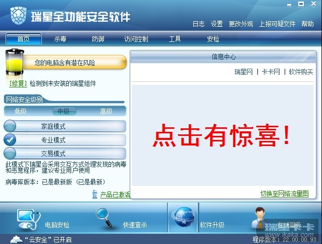 刚刚在windows7下安装瑞星2010,存在以下问题: