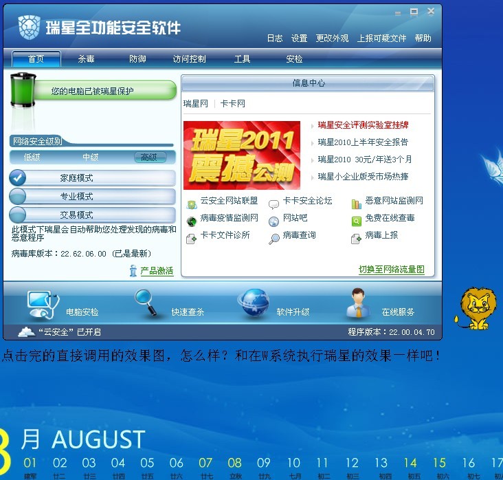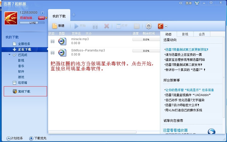 我们可以把迅雷7做为一个瑞星的调用平台,其他的软件也是同样的。从W系统里面转移到下载工具上面调用。(如图)
