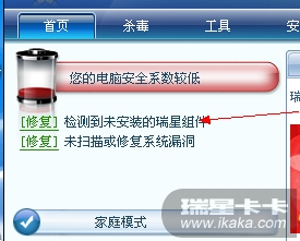 点击开始/所有程序/瑞星杀毒软件/添加删除组件,将未安装的组件勾选 后点击下一步安装,如仍有异常请加Q:86898582帮您远程诊断。