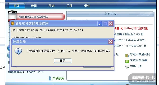 回复:我的瑞星怎么升级不了,看图,跪求高手处理