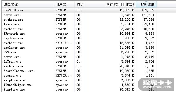 按i/o数据高到低排,,瑞星进程名列第一。。