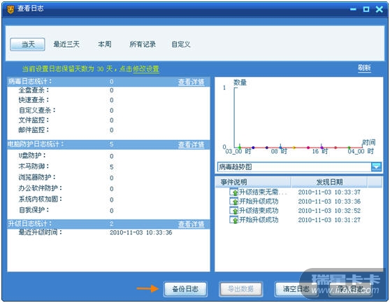 5. 如何找到被拦截的文件?可以从瑞星软件的日志中进行查看,如下: