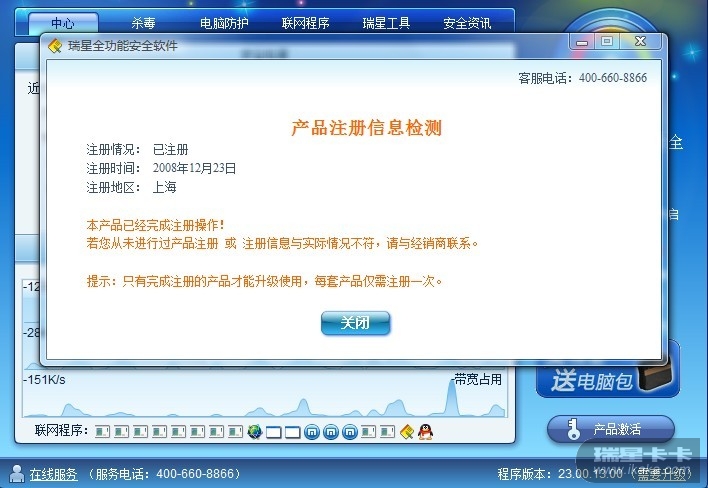 最后我还想说一点,那就是升级到2011版后 确实对系统起动和软件运行速度有影响,目前刚出来有问题可以理解,但希望尽快解决问题。毕竟我们是瑞星老用户了,不希望转向其他杀软。