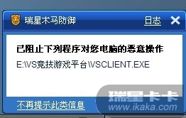 瑞星升级后,玩VS对战平台启动游戏就提示恶意操作
