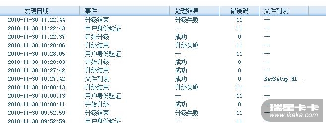 刚刚安装的瑞星2010点升级一闪而过没有任何提示,查看日志显示升级失败,错误代码:11。请问是怎么回事!!!