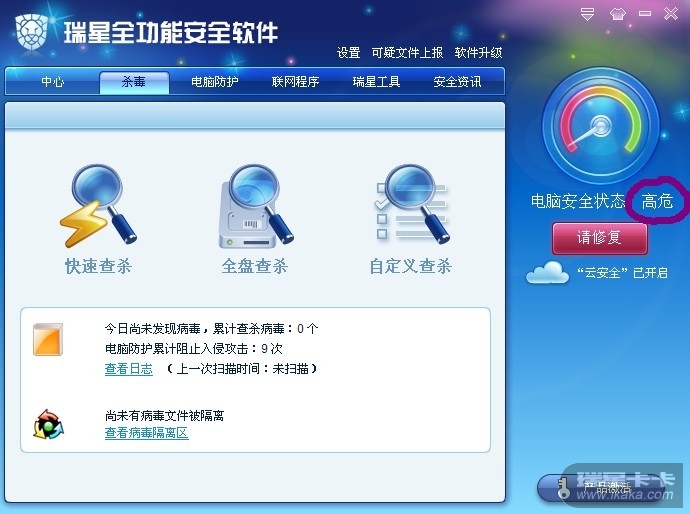 回复:怎么回事啊2011的电脑安全状态一直显示高危啊?